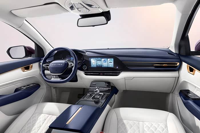 内饰方面,新车延续了燃油版简洁流畅的设计特点,只是在中控屏布局等方面略有细微区分。新车配备了3.5或7英寸全液晶仪表盘、双辐式多功能方向盘,以及10.25英寸独立式中控屏,该屏内置有五菱自研为主的Ling OS灵犀系统,但配置上取消了燃油版高配车型的语音识别控制功能。内饰配色方面,新车提供有两种内饰配色,分别为星月蓝白、麦田金棕,看起来氛围比较素雅清新。