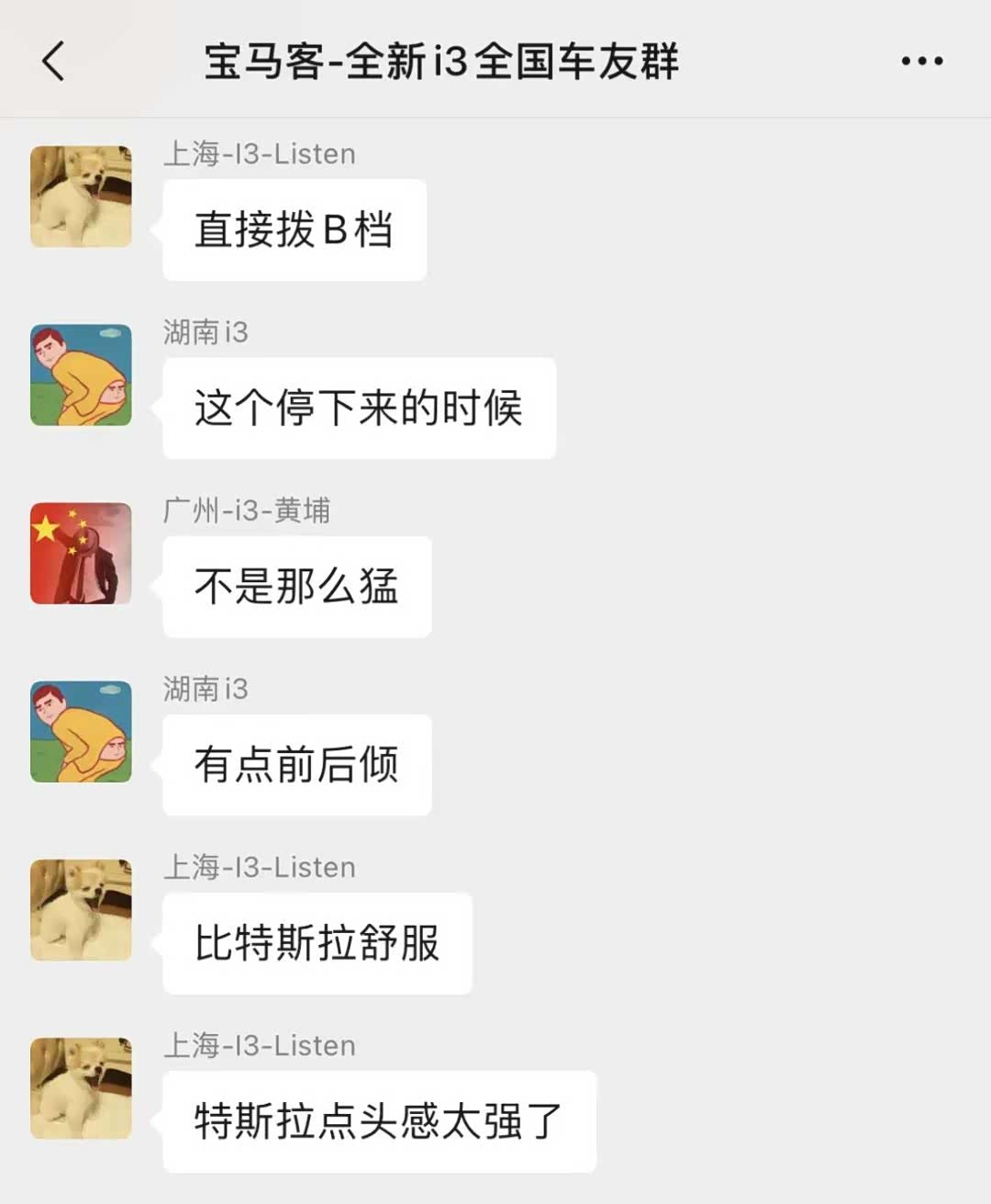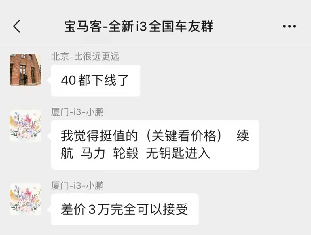 通常,全新i3的准车主会考虑特斯拉Model 3、蔚来eT5等其他品牌车型,从配置来看,全新i3所配备的自适应空气悬架对于舒适性的提升是同级别难以匹敌的,从产品来看,全新i3独特的底盘调校、更加安全高效的电池设计、内饰用料、续航不虚标等,也都是选择的理由。而在驾驶感受上,全新i3能量回收时不突兀、与燃油车无异的驾驶感受、加速体验不突兀等都有口相传。