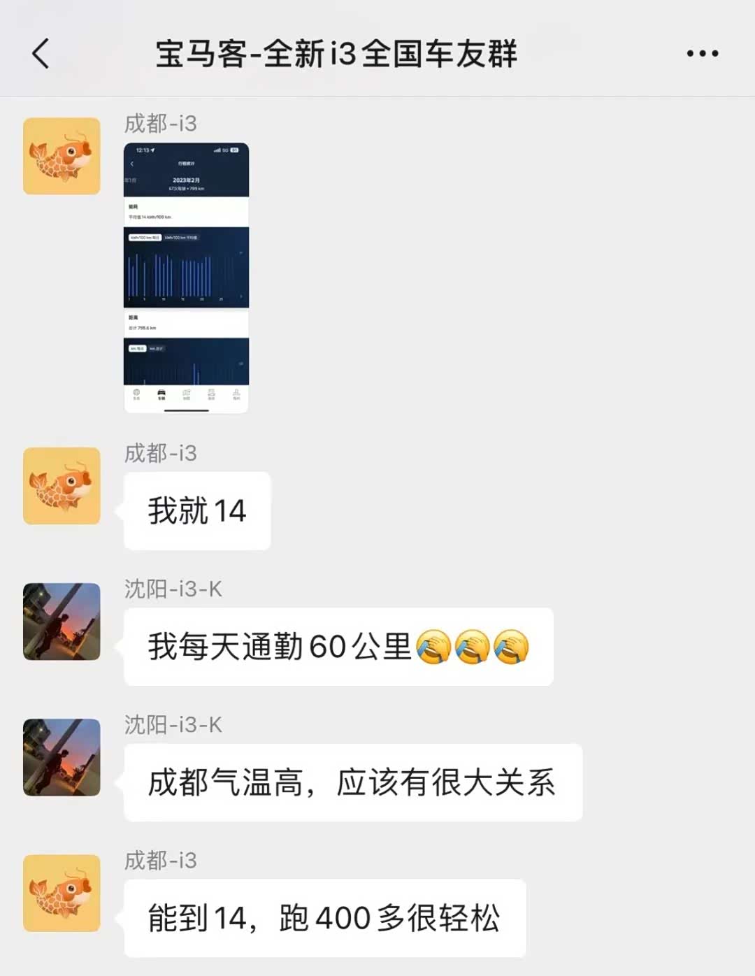 从宝马客全新i3车主群的车主反馈来看,一位全新i3 eDrive35L车主的2月份平均电耗为百公里14kWh,相较于官方宣传的百公里14.3kWh有明显下降,所以相信标称百公里14.1kWh的全新i3 eDrive40L会有更出色的实际表现。