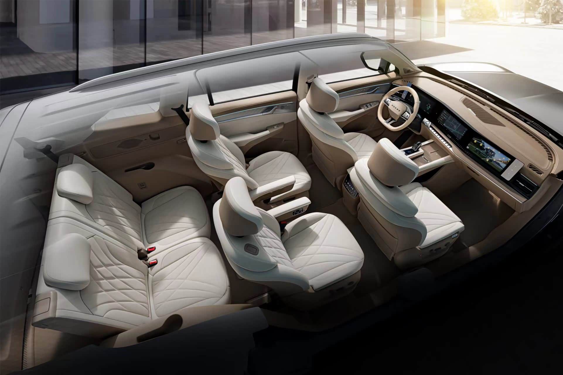 同时,2023款荣威iMAX8二排新增航空座椅,座椅用料精选自德国BADER的打孔头层小牛皮,配合睡眠级超宽航空头枕、0重力腿托与电动腰托,带来比沙发更为舒适的乘坐体验。而第三排座椅新增二次翻折功能,能够有效拓展车内“储物间”面积,最大容积达1564L。