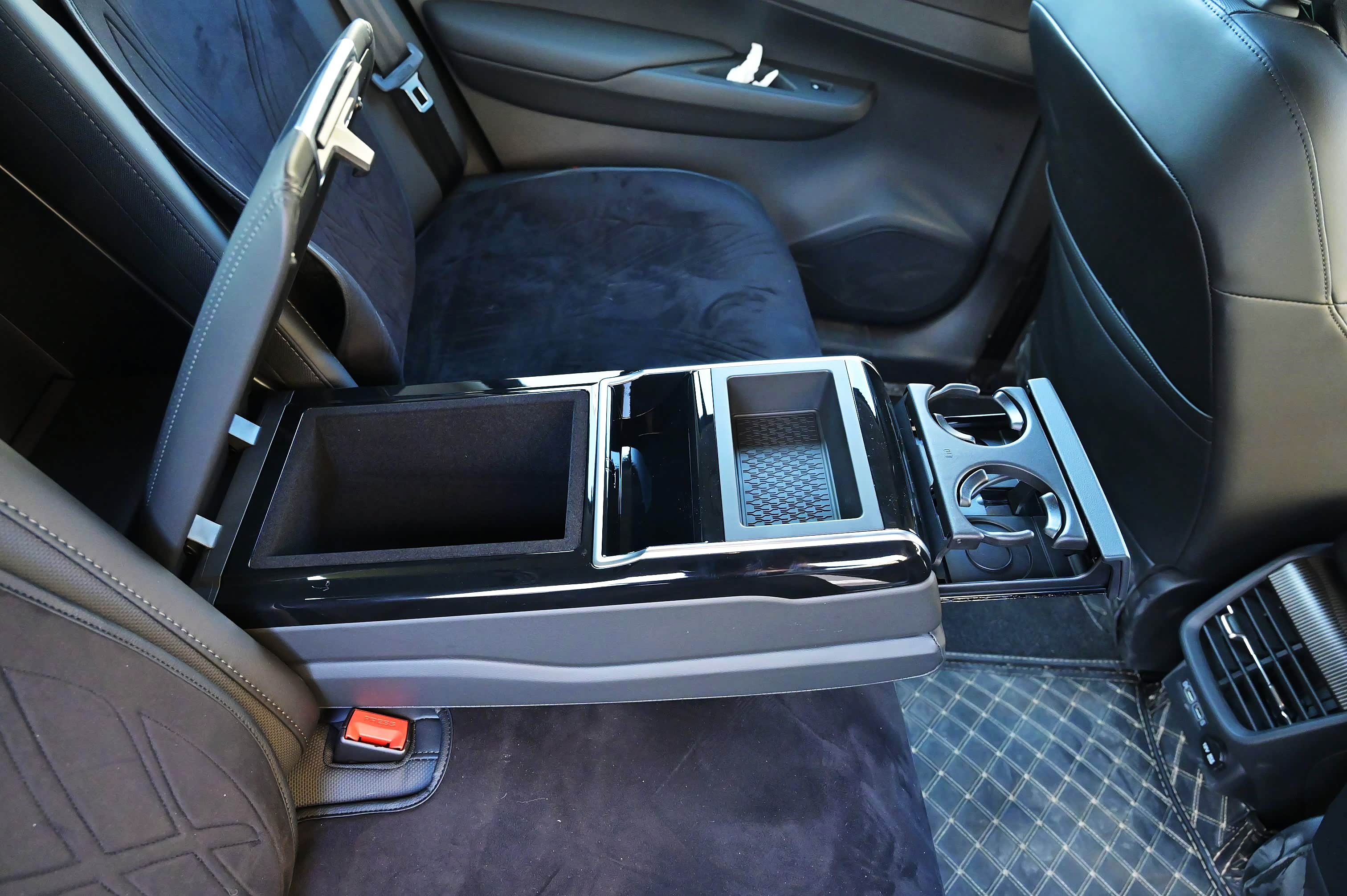 后排空间倒是设计了放水的位置,这是给乘客准备的,而且只能说是有2位乘客的情况下,才能将后排扶手落下