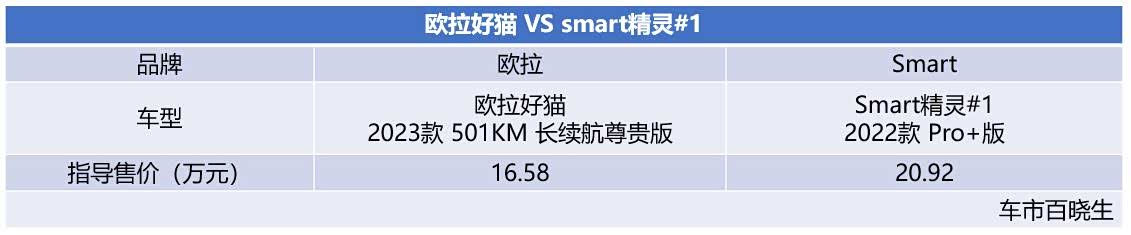 单从这方面来看的话,显然smart有“收割”的味道在其中,那接下来我们不妨对比价格最相近的款型,来看看到底是欧拉好猫更超值,还是smart精灵#1物有所值。