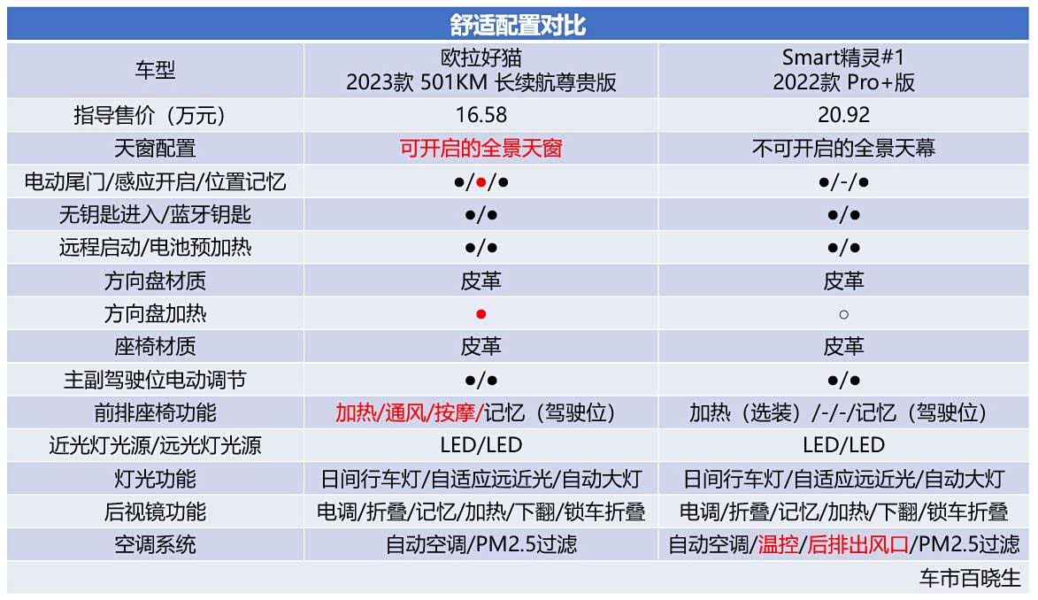 因此如果你是一个比较注重品价比的人,那么舒适配置方面的对比无疑是你最应该关注的,因为欧拉好猫所提供的这些更丰富的配置,无疑可以在日常使用时大大增加舒适感与便利性。