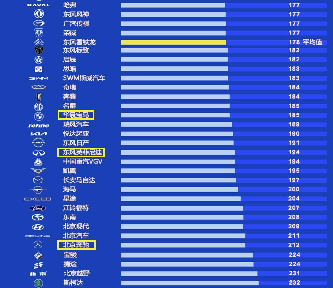 最后,上榜的豪华车品牌还有华晨宝马、东风英菲尼迪和北京奔驰,虽然它们也都是质量排名前十位的豪华车品牌,可它们的质量分数都高于行业平均值。华晨宝马和北京奔驰是消费者最喜欢的两大豪华车企,年度销量都在60万辆以上,主打车型宝马3系、奔驰C级、宝马X3和奔驰GLC等,都是稳居豪华车销量榜前十名,可它们在品控方面,却有点不尽如人意。