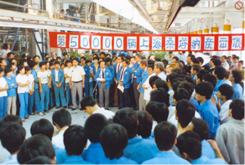 在那之后,上汽大众驶入发展的“快车道”。1989年9月28日,上汽大众第5万辆轿车下线;1990年4月18日,上汽大众五周年庆典,一期工程建成投产,达成年产6万辆整车和10万台发动机的生产能力。