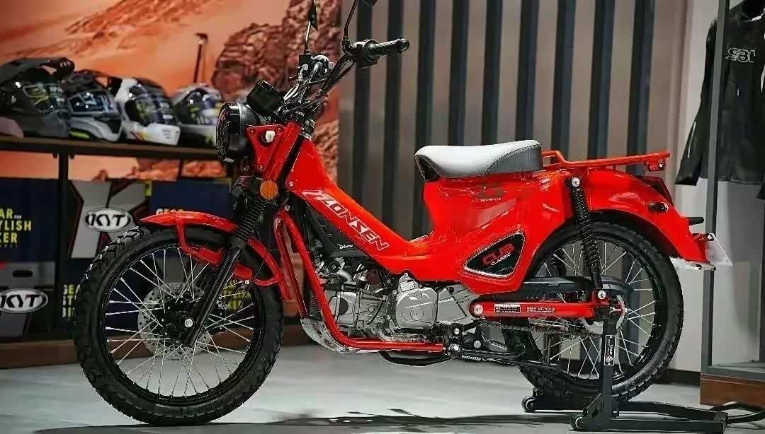 125X则是一款越野弯梁车,这款车在外形上并没有借鉴CT125,但它的风格还是属于弯梁车中的CT元素;不过这款车的硬派属性极其突出,它的最高离地间隙达到了180mm,油箱容积也来到了9L,并且还装配了拥有平衡轴的发动机,所以在可玩性上不言而喻。