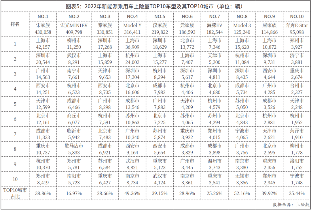 图表2:2022年新能源乘用车上险量TOP10省份及主力城市(本省占比≥10%)
