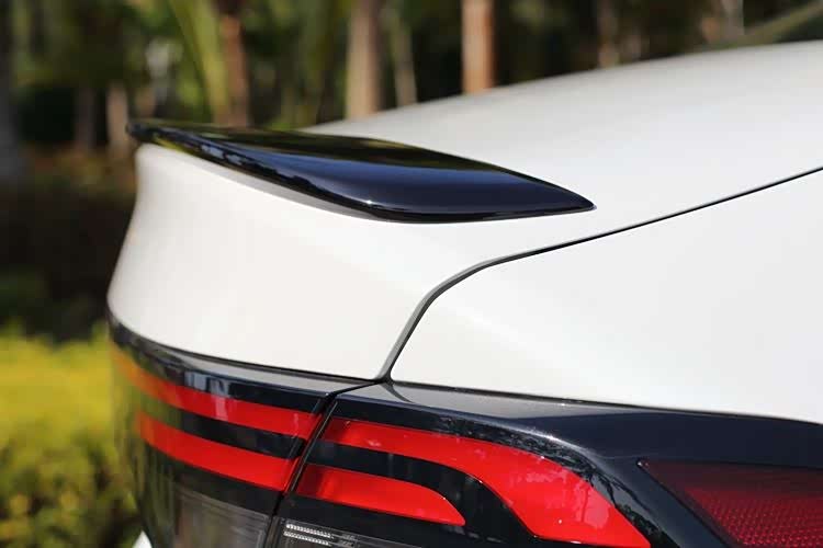 车尾部分,较为醒目的是“三道杠”:第一道是尾门上的黑色尾翼,第二道是尾灯,第三道是底部的银色扰流板。