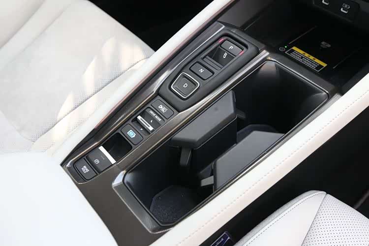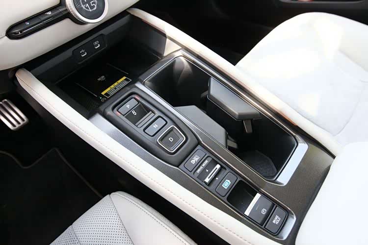 操作区由挡位按键(燃油版是操作杆)、自动泊车按键、驾驶模式选择键和驻车制动按键组成。