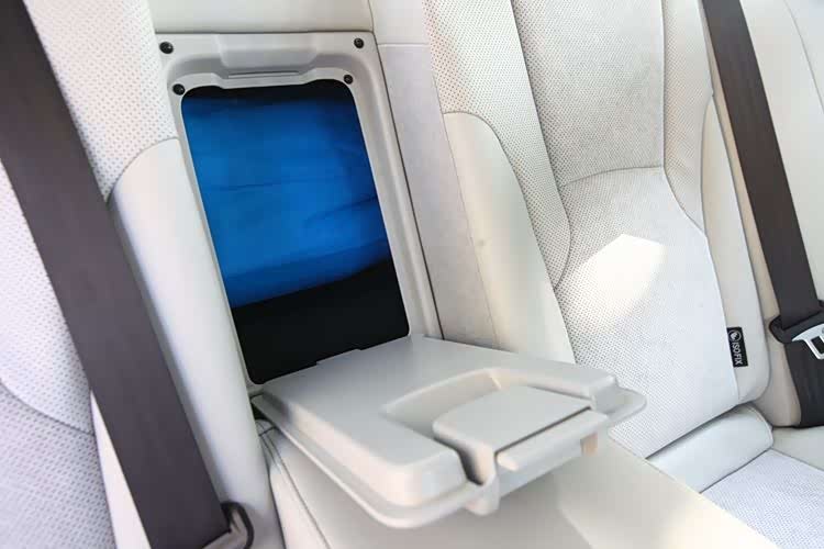 中央扶手是整个椅背全部放下,尺寸十分宽大,看着就痛快,左右座乘客的手臂靠上去,感觉挺舒服。