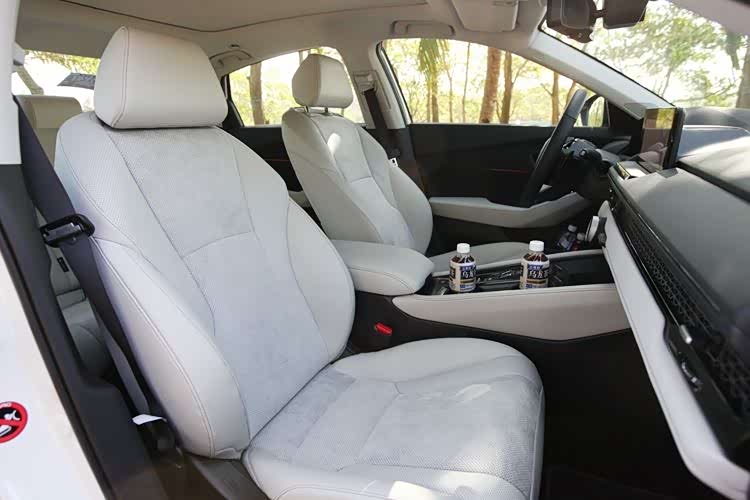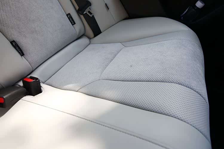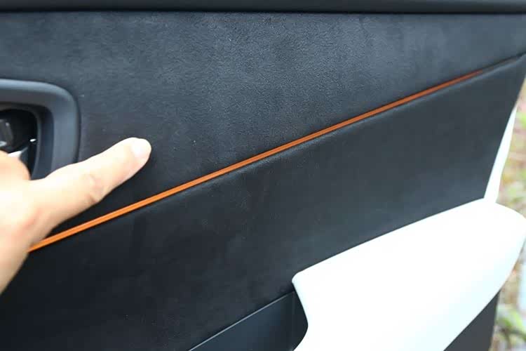 特别之处在于,椅面与椅背的中间区域,采用的是类似于麂皮的材质,视觉效果很细腻只是一方面,更主要的是增强了摩擦力,提高了乘坐的稳定感。