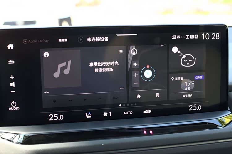 中控屏是一块12.3英寸的液晶屏,内置本田的第四代智导互联,配备全新的百度地图,语音控制功能也有所提升,并具备面部识别、多种小程序APP等功能。支持苹果与百度的手机映射,是标准配置。