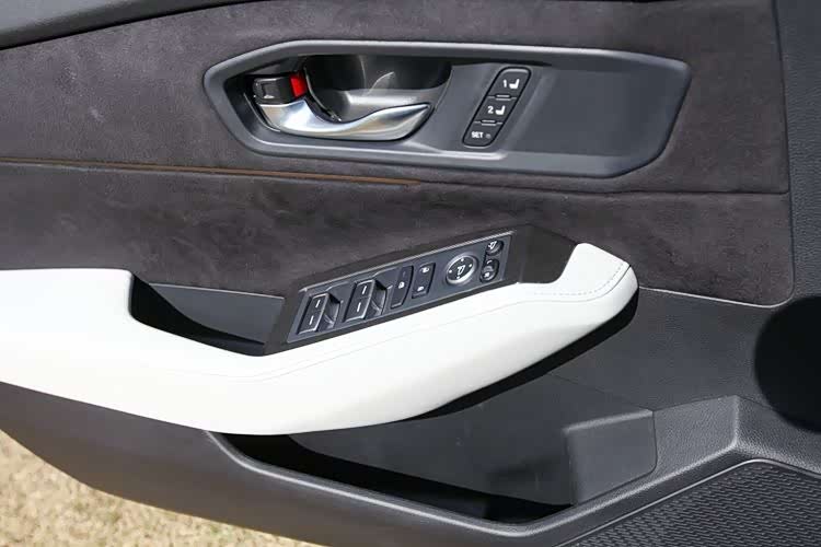 车门内饰板中部,是一种类似麂皮的面料,材质的手感很好。扶手部分是与座椅同色的皮革,面板上的操作键布局合理,易于操作,没有为了追求所谓科技感而故弄玄虚,人为制造麻烦。
