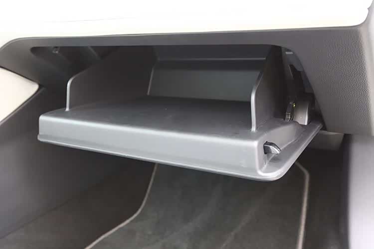 副驾车门内饰板的储物槽,与正驾相同。副驾面前的手套箱,有很好的开门阻尼,但位置较低,箱内构造简单,容积不大。