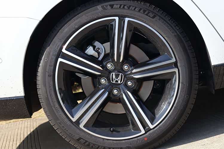 车轮分为3种规格,燃油版是17、18和19英寸,对应的轮胎分别为225/50 R17 94V、235/45 R18 98W和235/40 R19 96W;插混版是18英寸,五辐造型,轮胎规格235/45 R18 98W,拍摄车装车胎是米其林的聆悦(e•PRIMACY),这是为电动车设计的,以低滚阻和低噪音为主题。插混版无备胎,燃油版配小尺寸备胎。