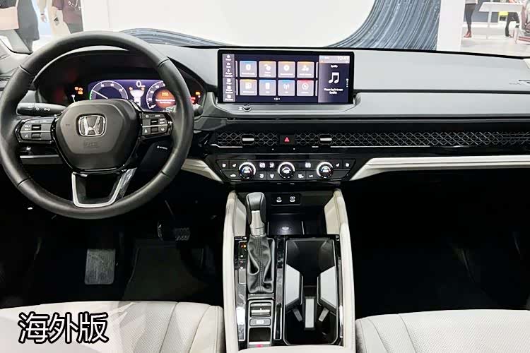 中控屏的下面,隔着出风口,是一个挺大的旋钮,旋钮两侧各有2个按键。与去年在洛杉矶车展首发的第11代雅阁相比,国产版内饰最大的变化,正是此处。海外版的样式看上去比较“传统”,国产版显得新颖一些。