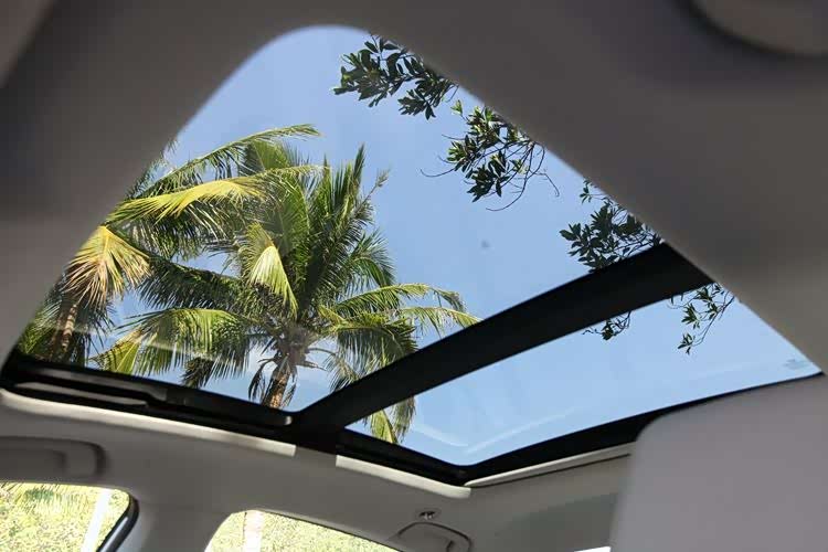 天窗为全景式,前后排都能享受到,遮阳帘的做工挺精致,比那些号称电子防晒、连个遮阳帘都不给配的车强多了。
