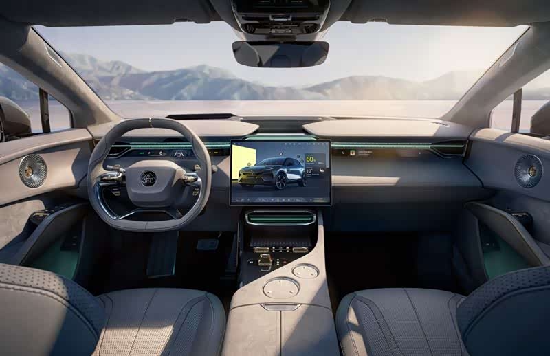 新车内饰也是很有看点,整体风格很简洁。中控一块15.1英寸的悬浮式大屏,集成了各种功能操控。仪表盘和副驾驶都是12.6英寸的长条形全液晶显示器,很另类,看着有点累。好在还有一个29英寸的抬头显示作为补充,另外后视镜也是采用流媒体后视镜显示,彰显科技实力。