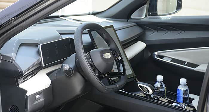 关于车里设计不多说了,车里的亮点主要集中在智能化科技配置层面,全新博越COOL标配了10.25英寸全液晶数字仪表+13.2英寸2K数字大屏,车机系统集成吉利银河OS Air,并全系标配8155芯片。
