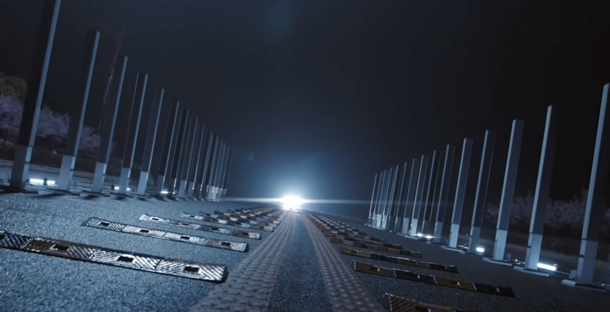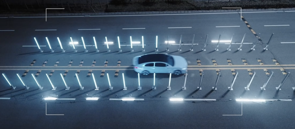 而车辆将会从其中通过,并搭载激光指向仪,在大量减速带过程中,必须保证激光指向仪始终指向仅1cm的感应区,一旦偏离激活错误区域,灯柱瞬间炸裂,挑战难度之大宛如007电影一样。