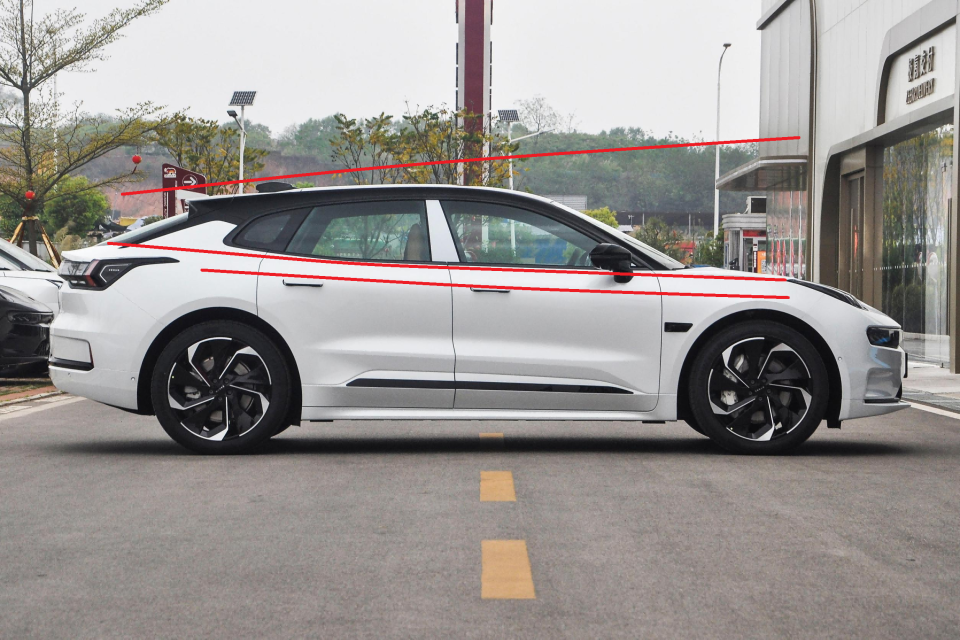 通过勾画,ZEEKR 001的三条线的位置如图所示: