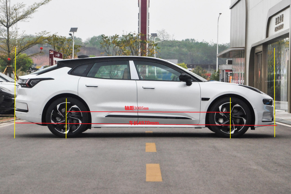 通过计算,ZEEKR 001的比值为0.6046(3005/4970=0.6046)。作为参考,同级车中汉EV的比值为0.5845(2920/4995=0.5845),飞凡F7为0.6000(3000/5000=0.6000),因此ZEEKR 001的比例更接近黄金比例,看起来也更有美感。