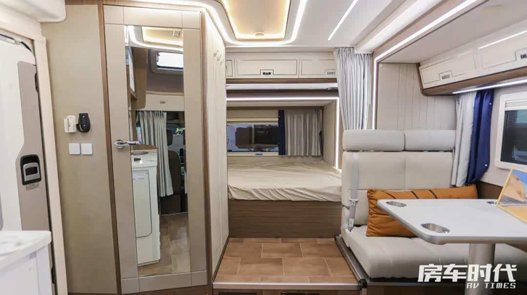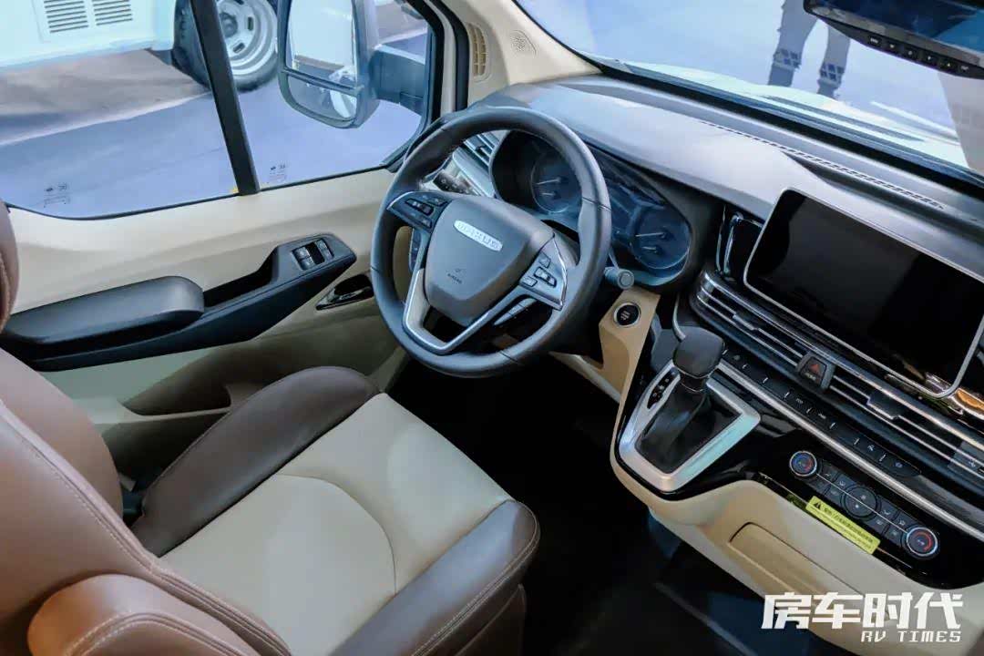 驾驶室做工精致,配备了真皮多功能方向盘,区域内匹配有10.25吋高清触控大屏+手机互联+4.2吋液晶仪表,安全辅助驾驶方面,车辆配备有博世ESP9.3电子稳定辅助系统、360全景可视行车辅助、锁车哨兵模式、ACC全速自适应巡航控制、ICC超级巡航、LDW车道偏离预警、TSR智能限速辅助、AEB自动紧急制动系统、FCW前向碰撞预警、HLC限高防撞预警、安全增强包(高清三路流媒体+驻车安防六路监控)、智能遥控主副驾车窗、前雷达+倒车雷达、电动助力转向、电动电加热外后视镜、EPB电子驻车制动、Autohold驻车自动保持等,家庭出游时,这一套全方位行驻车一体安防系统能够充分保障家人安全,房车旅居更加轻松省时省力,房车新手也能够很好的驾驭。