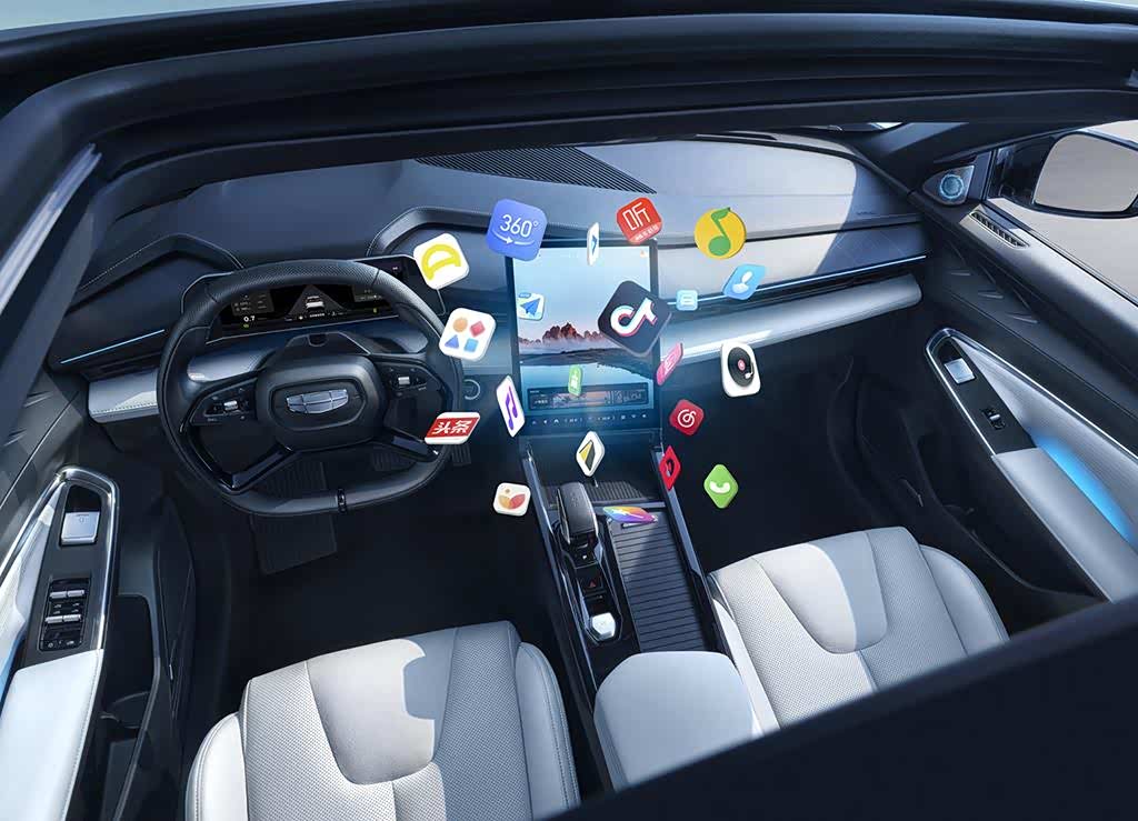 座舱部分,博越COOL采用了博越L相似的内饰布局,中控区域最吸引人眼球的当属这款纵向布置的13.2英寸中控屏,其分辨率达到了1440×1920,新车将会配备高通骁龙8155车机芯片,拥有16G内存+128G存储,7nm级制程,8核心CPU的硬件水平,吉利银河OS Air车机系统支持语音交互、在线导航、在线音乐、4G网络+车载Wi-Fi、蓝牙连接、手机App智能远程控制等功能。