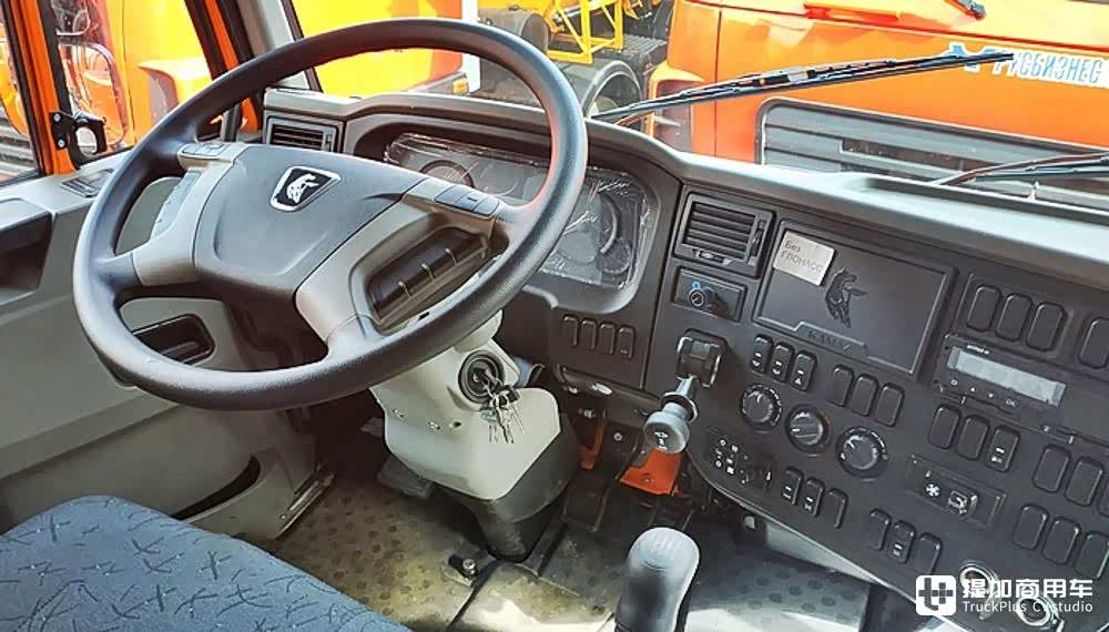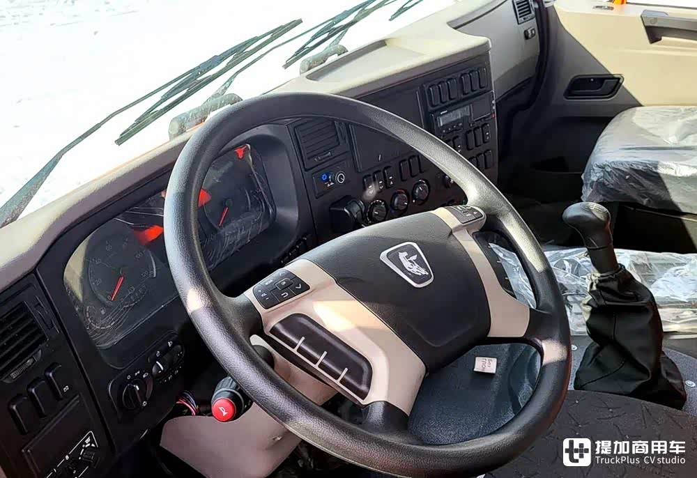 内饰方面,KAMAZ-6520可谓是做出了“大升级”。首先,它的方向盘采用了与K5代相同的四幅式多功能方向盘,全新设计的盘面带来了更好的操控性。此外,车辆仪表台也采用了新款设计,各类控制按钮的尺寸更大、更便于驾驶员控制。