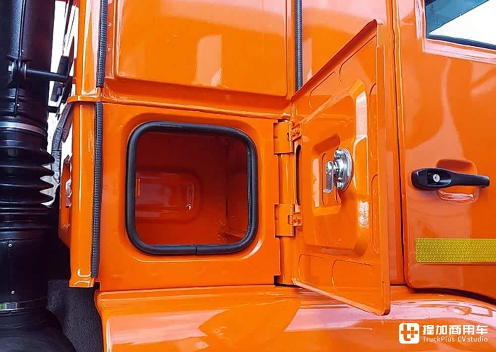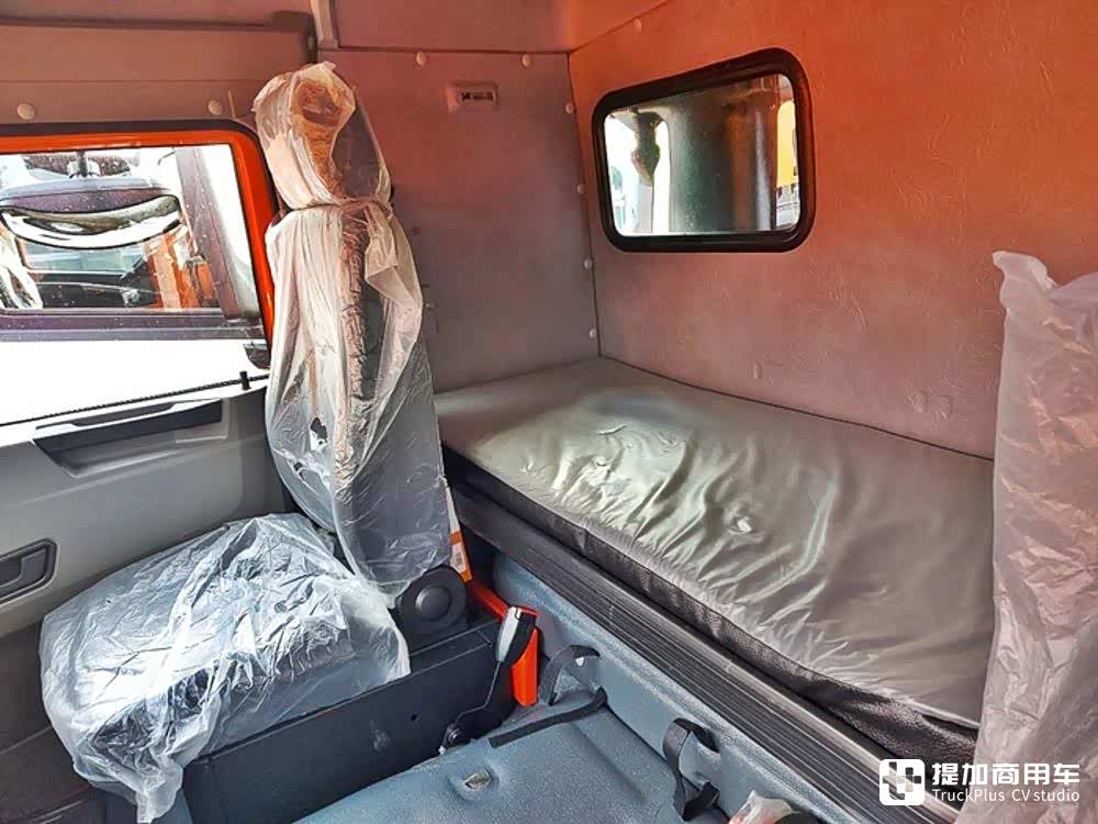 在主驾驶座椅后方是车辆的卧铺,虽然其宽度并不优秀,但对于一台自卸车来说也已经够用。后壁上的窗户采用双侧设计,左右各一个小窗户,以供观察左右情况。