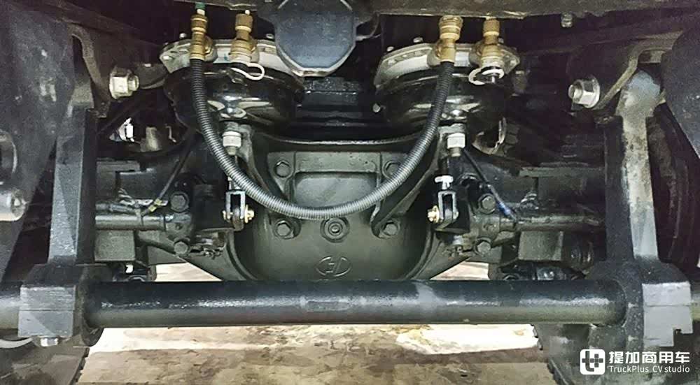 车桥呢?为了实现更好的承载能力,KAMAZ-6520采用了中国汉德提供的16吨级双联驱动桥,双后桥总轴荷达32吨,取代了此前采用的汉德13吨级双联驱动桥。由于卡玛兹并不具备自产重型车桥的能力,所以这类用于自卸车、吊车等重型车辆的车桥全由汉德提供。