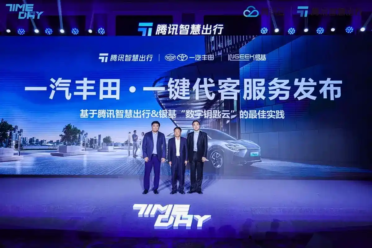 在发布会现场,一汽丰田与腾讯智慧出行联合银基科技正式宣布了基于数字钥匙云的一键代客服务,北上广深等25个城市都已落地了代客充电和代客维保功能。