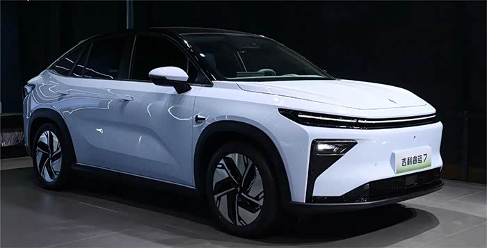 吉利睿蓝7使用了最新的家族化设计风格,总体外观表现符合当下电动车流行的设计风格,同时新车有轿跑式SUV车体轮廓,这得以让车身线条更显流畅了,官方数据表明该车拥有0.238Cd的风阻,这一数值对于一台SUV来说其实已经很低了。
