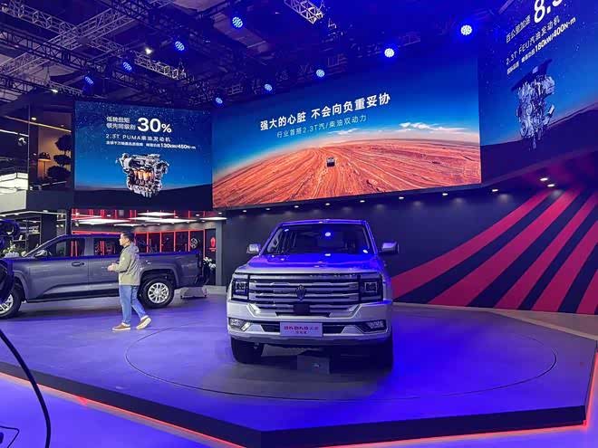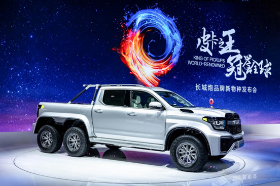 头号明星无疑是 长城炮(参数|询价)6X6共创车型CYBERP!CKUP,该车来自长城炮6X6超级越野平台技术创新,并由长城炮携手个性化定制汽车品牌超境打造。采用独特的“3轴6驱”布局,标配5把电控差速锁、氮气减震器;采用非承载高扭转刚度车架,匹配前双叉臂独立悬架+中\后五连杆整体桥悬架,33寸超大越野轮胎,成就全场景、全地形超级越野能力。
