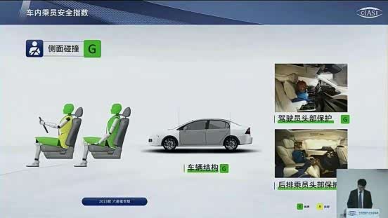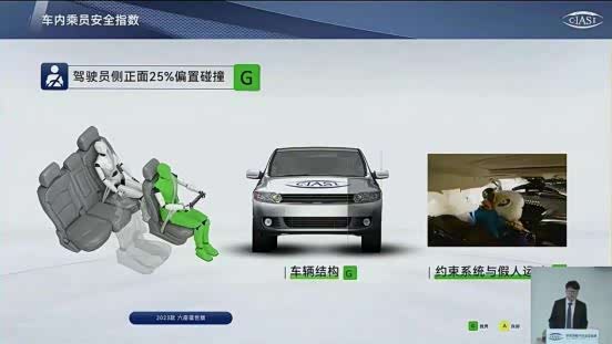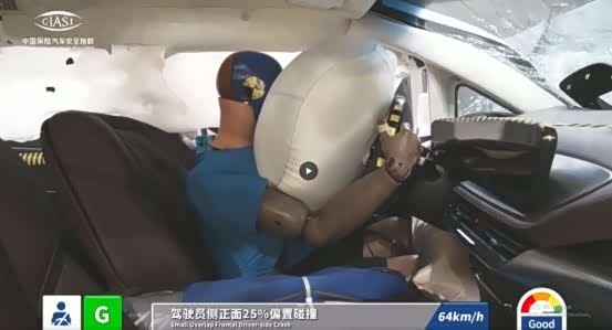 车内乘员安全指数为G级,其中驾驶员侧正面25%偏置碰撞、侧面碰撞、车顶强度、座椅/头枕四个项目均为G级,尤其是正面25%偏置碰撞,更能体现安全性。