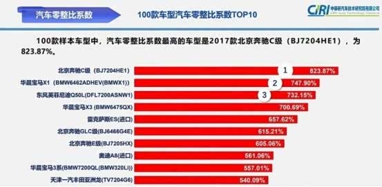 原因在于“零整比”问题,也就是车辆的配件价格总和与整车销售价格的比例。让我们以一辆10万元的车来举例,其零整比为500%,如果你想拼凑出一辆车,必须付出50万元的成本,这就是零整比的意思。