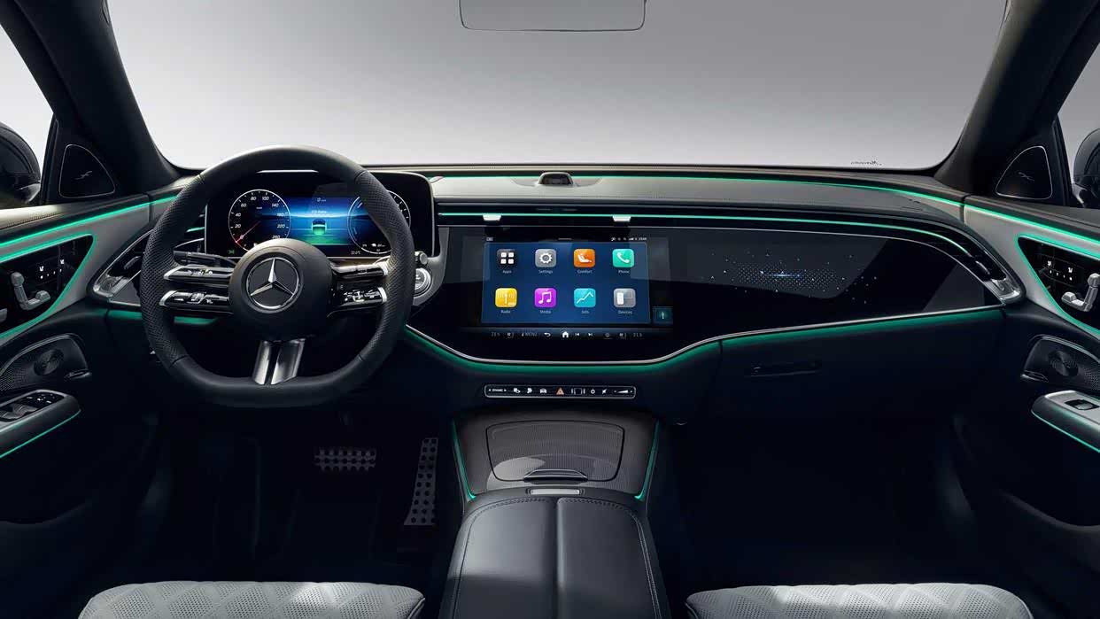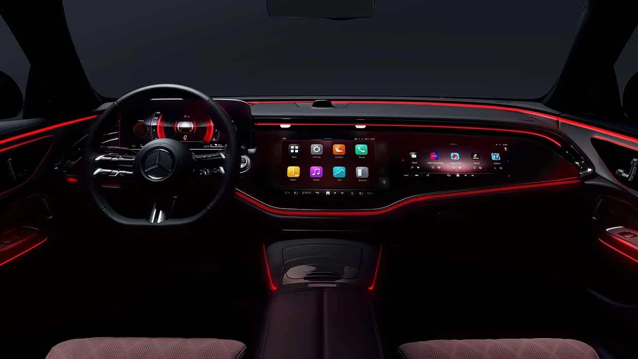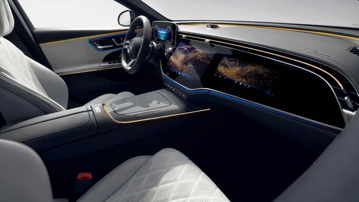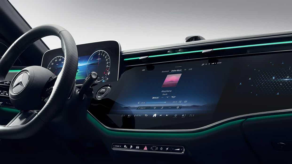 全新奔驰E级采用与EQS、EQE类似的全新MBUX超级屏(MBUX Superscreen),内置最新MBUX Entertainment Plus系统,视觉感受十分震撼。车机系统全面打通车辆功能,包括信息娱乐、智能驾驶辅助、车辆行驶以及舒适性功能等等,同时还可以实现虚拟现实、裸眼3D等效果。