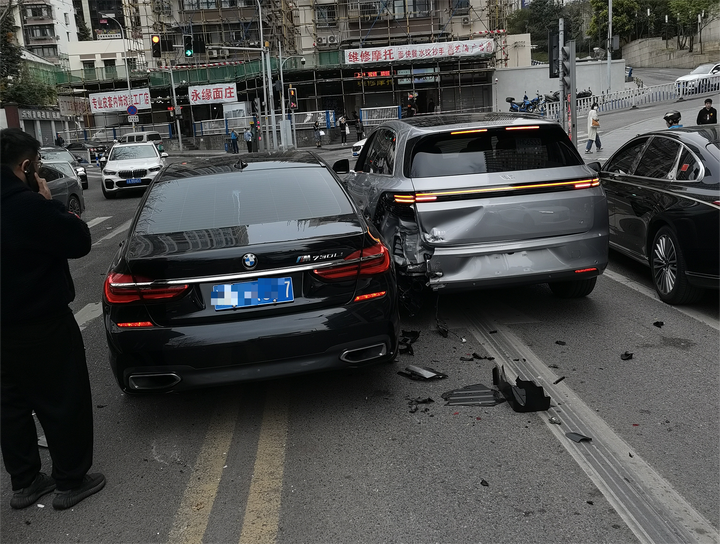 话不多说进入分享正题,前几天我们接到一个案子,就是上图发生事故中的一幕。一位粉丝新买的 理想L7(参数|询价),头天刚刚开出4S店,第二天开去上牌的路上就被后方驶来的一台宝马7系给撞了,发生事故后,双方经过“友好协商”加上交警出具的责任认定书,认定宝马车驾驶员为全责,本次事故造成的车辆损失由宝马车的保险公司承担两车的维修损失。