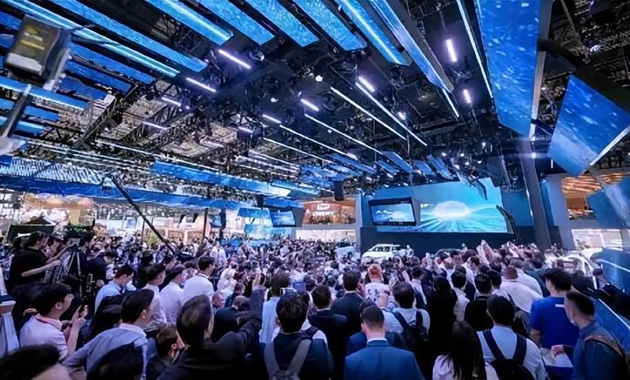 图为2023上海国际车展人头攒动的奇瑞展台