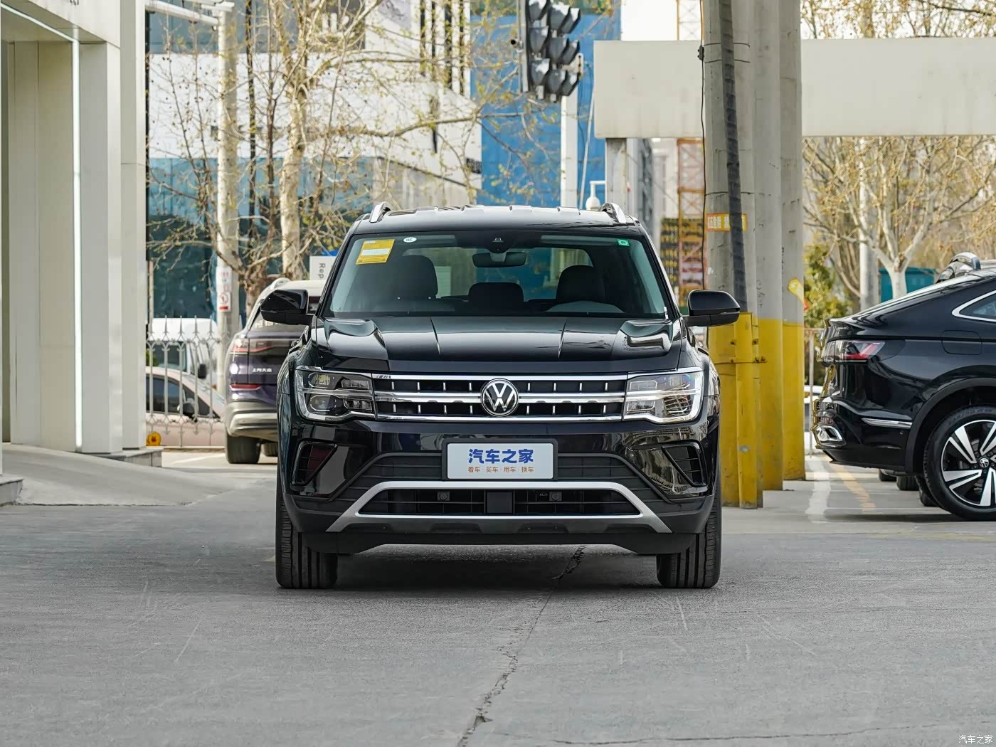 在外观方面,途昂整体走的是硬派风格,前脸格栅与两侧矩阵式大灯融为一体,格栅内部加入了银色镀铬亮条进行包裹,视觉冲击力不错,两侧大灯组尺寸比较大,显得颇为精致,下部导流口采用对称式设计,进气口是梯形样式,同样加入了银色镀铬饰条,车头引擎盖采用凸起的线条进行装饰,具备一定的力量感。