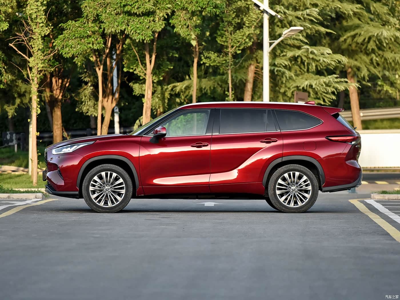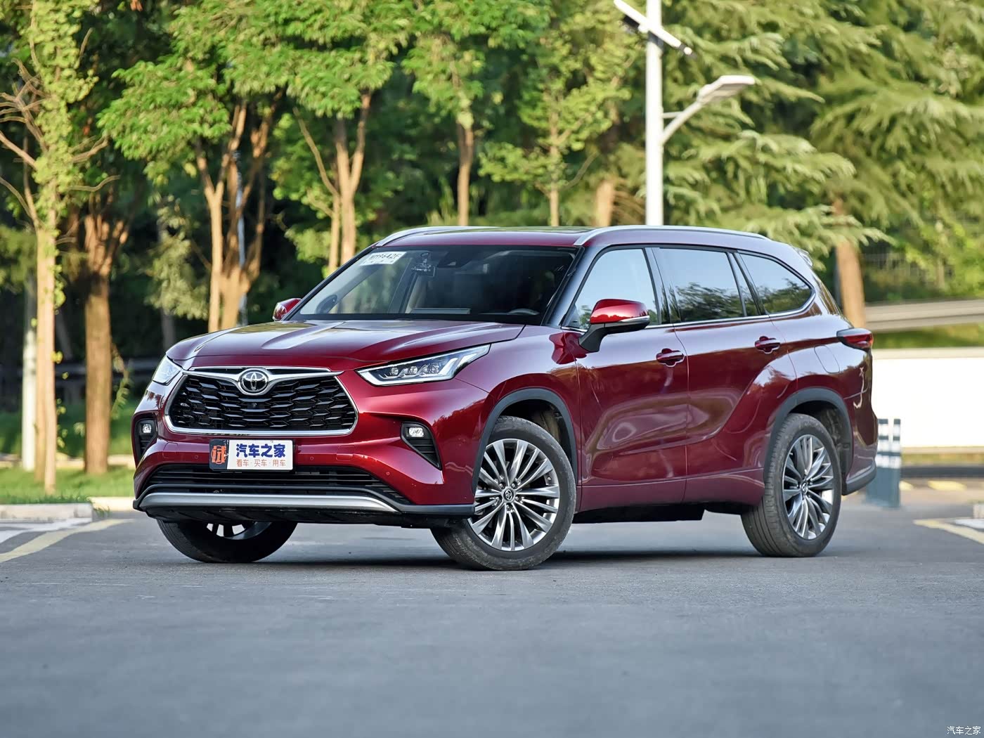 从外观上看,丰田汉兰达采用了丰田汽车家族式的设计语言,外观辨识度极高,经典的白色车身搭配前脸横向进气格栅颇具丰田汽车的风格,中间的车标内部采用熏黑处理,时尚感不错。远近光灯内部采用了LED光源,夜间点亮的效果不错,功能上标配了日间行车灯、自适应远近光、自动大灯、前雾灯、大灯高度调节和大灯延时关闭。