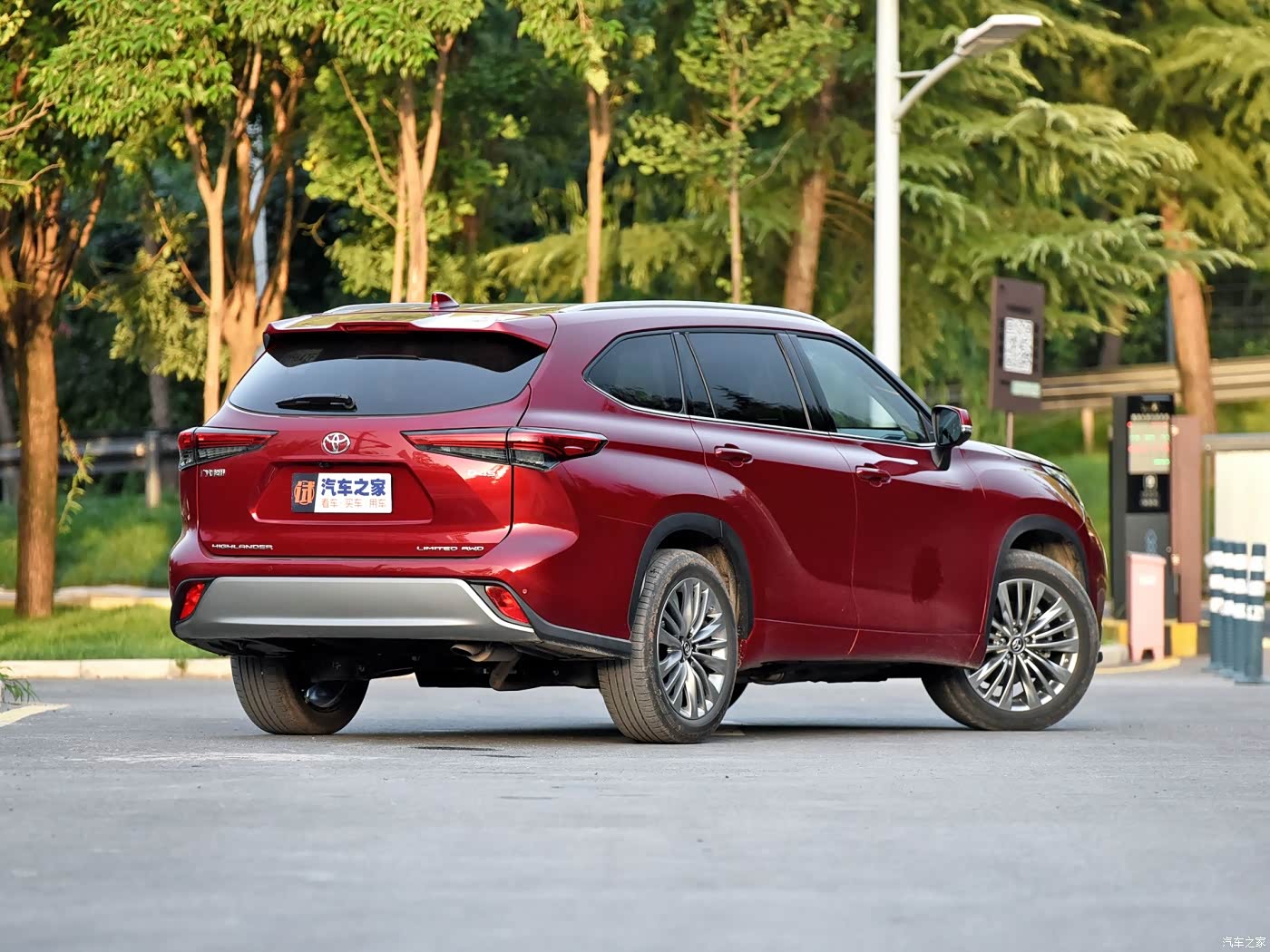 汉兰达的尾部经过特征性勾勒之后营造出不错的层次感和肌肉感,而后窗的倾角更大,让尾部造型拥有更强的动感,同时熏黑的后尾灯造型与头灯组形成呼应,加上敦厚的后包围造型,车尾视觉力量感很强。
