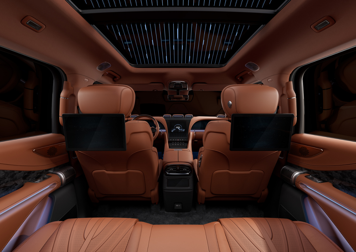 有底气定价上百万,内饰用料和配置自然是毫不含糊,仰望U8车内中控台面采用了全面屏配置,驾驶员正前方有镶嵌数字液晶仪表盘,中控采用了12.8英寸大竖屏,而且是触摸oled屏,这已经向着手机行业的旗舰配置看齐。关键后排还有单独的娱乐屏幕,豪华版提供的是双12.8英寸娱乐屏,22个丹拿扬声器带来的是超豪华立体声感受。