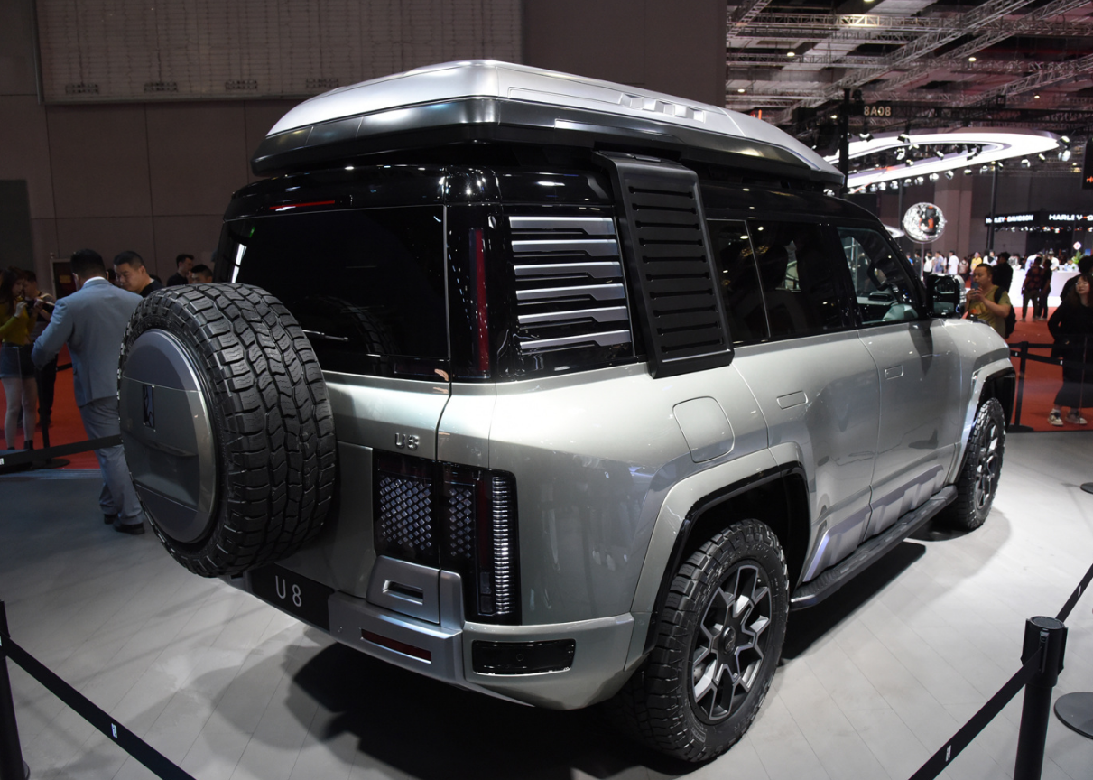外观设计也是加分项,虽然没有继承比亚迪王朝或者海洋网系列产品的设计语言,但是有前奥迪设计总监把控审美的情况下,这款仰望U8确实塑造出了外观的高级感,前脸矩阵散射状灯光比传统燃油硬派越野车炫酷很多,而且悬挂新设计的甲骨文车标logo。车身侧面看有点路虎卫士的感觉,不过细节装饰显得更科幻。