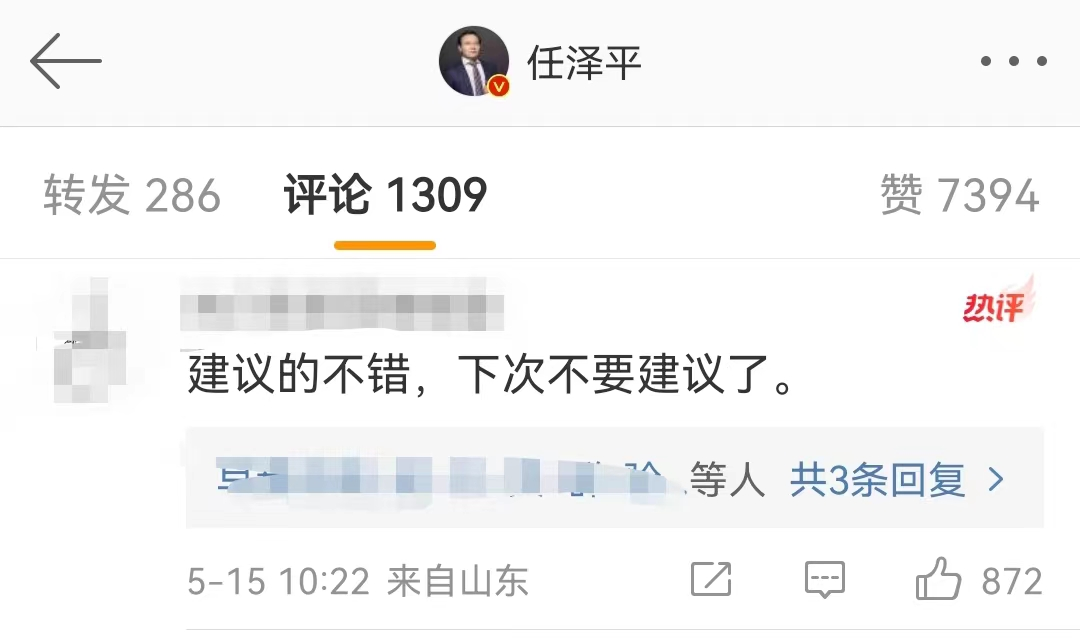 3天之前的5月15日,任泽平曾在微博上给出了一个结论性的判断:建议推出五年内燃油车禁售时间表,河北以南,大力发展新能源,双碳,扩大内需。对于这一建议,当时的网友并不买账。而网络上的评论几乎呈现出一边倒:“建议专家不要建议”“这位专家是深套新能源了吧”“专家住在北京,河北以南不包括北京”……多数网友还是在担心禁售燃油车对生活带来的不便。