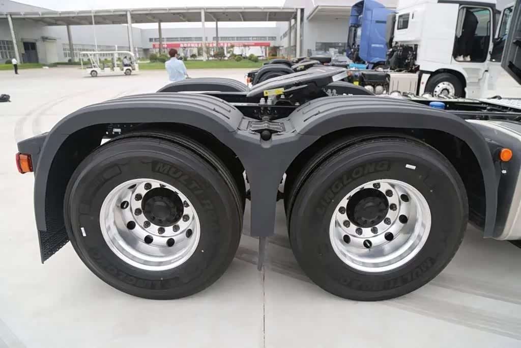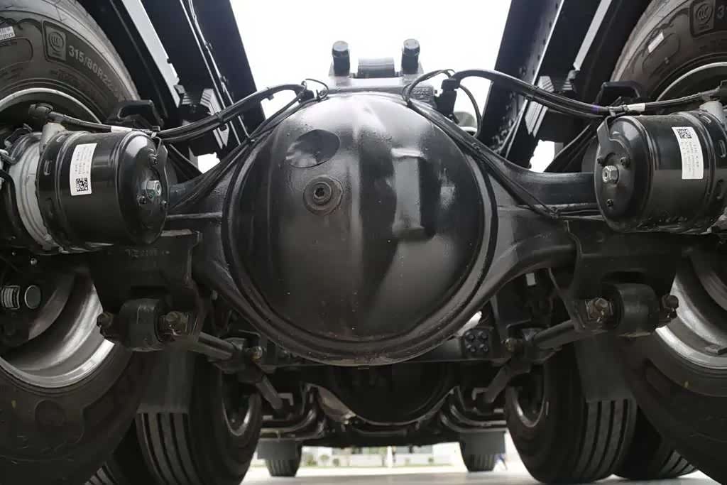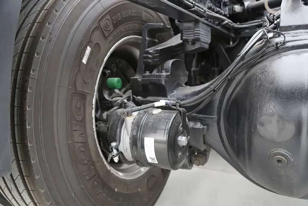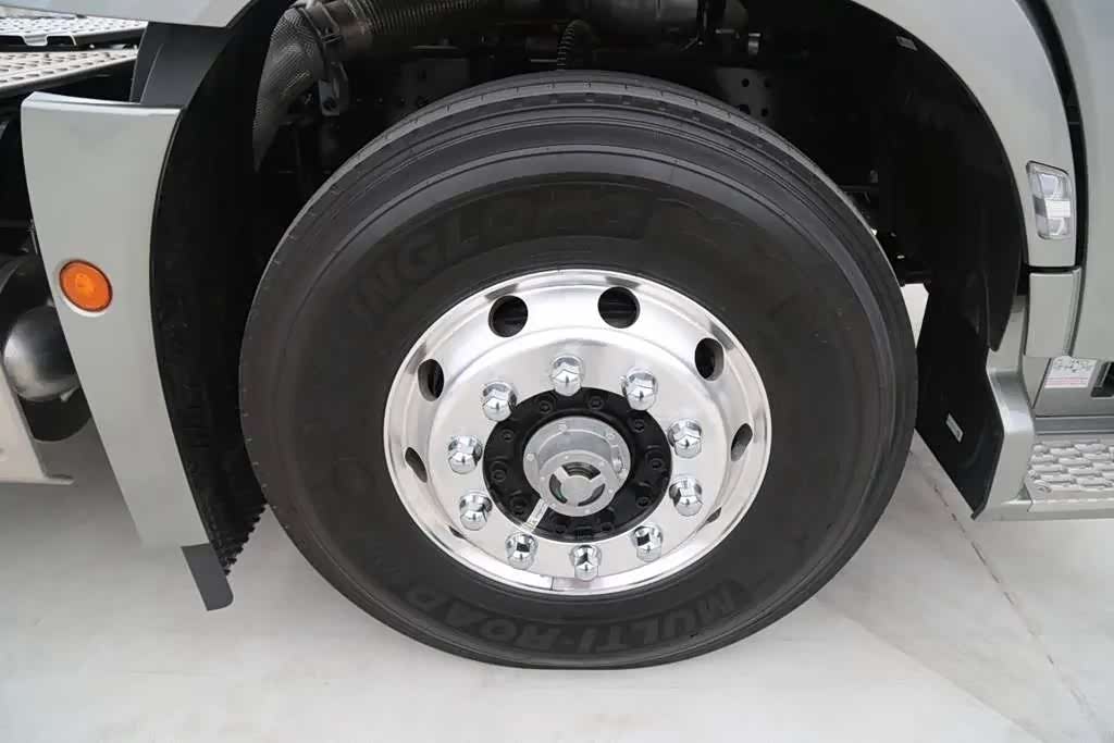 AM5前桥带康迈免维护轮端,全车使用铝合金轮圈和玲珑KTA303 315/80R22.5型轮胎。