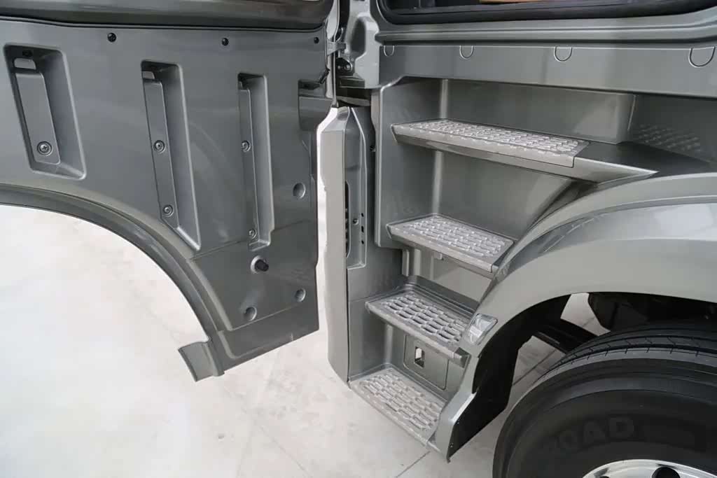 通过设置在车架左侧的台阶,驾驶员可以来到驾驶室后方的工作平台上保养和清洁车辆。