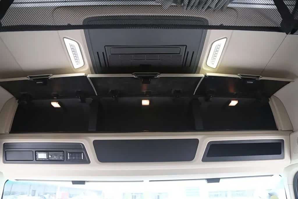 丰富的储物空间对长途行车十分有利,车顶设有博格思众空调和照明灯。
