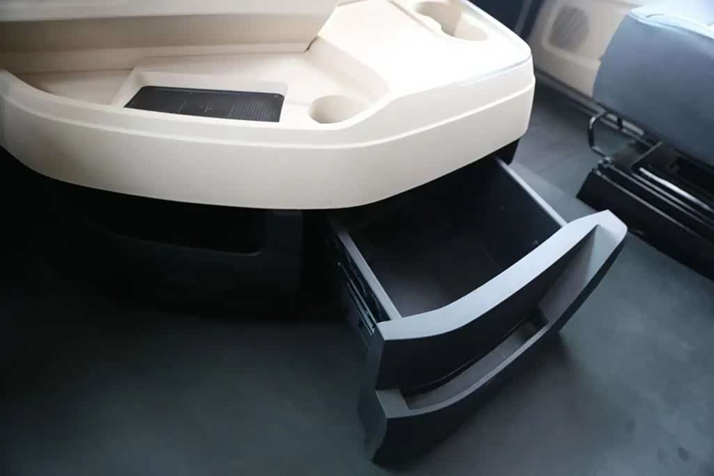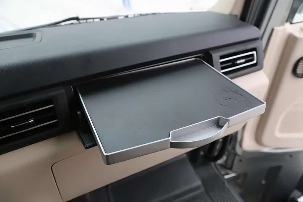 副驾驶座椅前方收纳着可承重3kg的小桌板