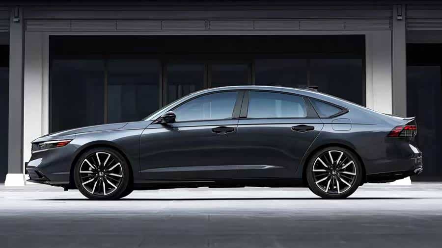 侧面部分,作为雅阁的特色之一,溜背式造型在全新车型上保留下来。不过新车的前机盖部分更显修长,这就导致整车在侧面拥有一个低趴的视觉感受。